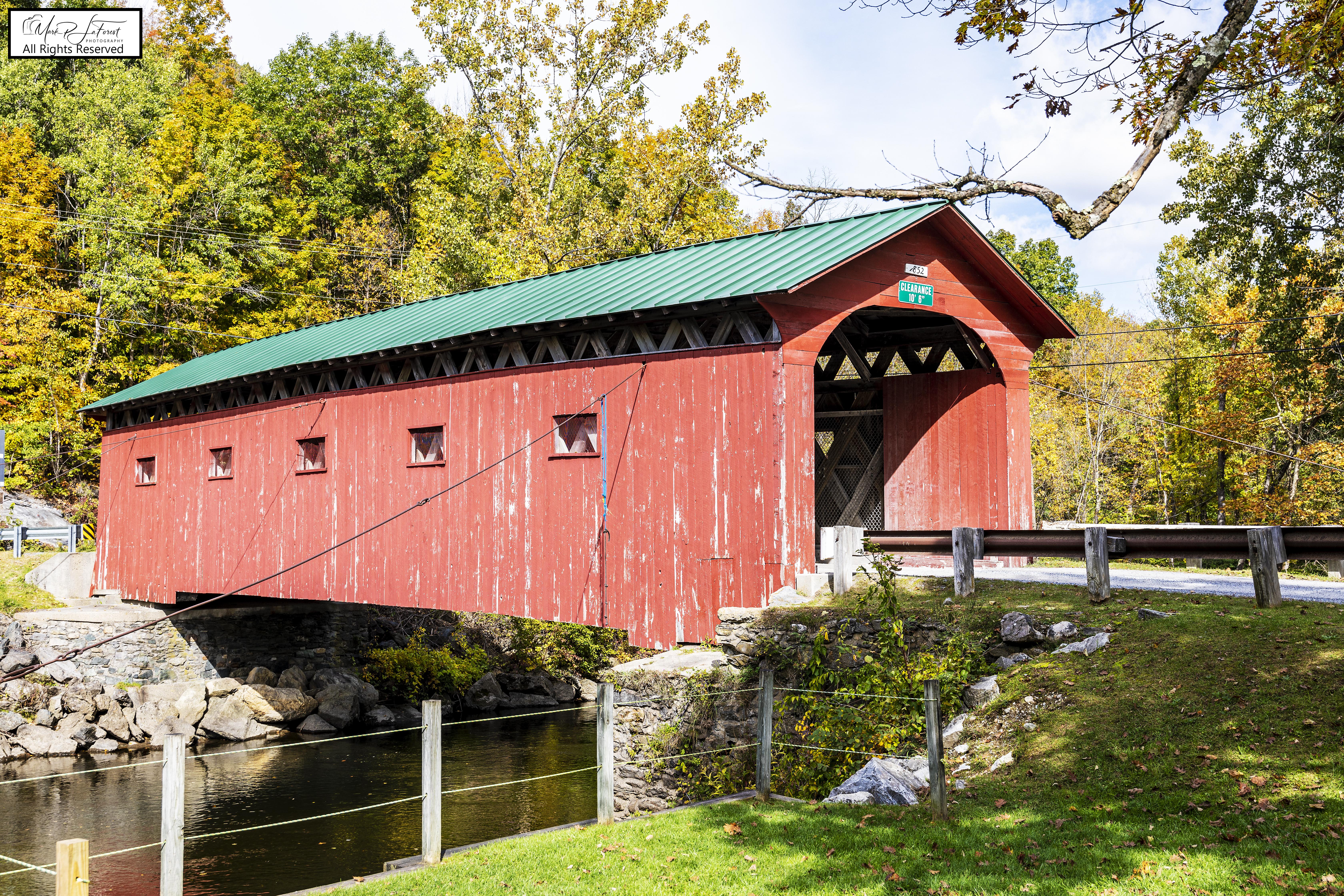 The bridge was built in 1852 and is one of the state's oldest surviving covered bridges. It is also unusual in that it has not had any 20th-century strengthening elements added, a common feature to many of the state's older bridges. On August 28, 2011, the Arlington Green Covered Bridge was damaged by flooding caused by Hurricane Irene; it was fixed in the following months and reopened to traffic. -- Source Wikipedia